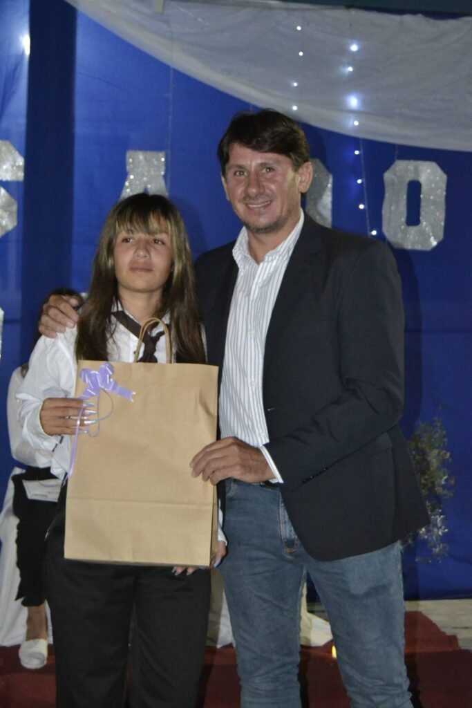 El Sr. Intendente Raúl Cañete, junto al Viceintendente Mauro Grunevalt, el Secretario General Norberto Miño, el Secretario de Acción Social Ariel Arce, la Secretaria de Cultura, Carina Arizaga, y, los Concejales Mariana Vega, Humberto Osorio y Mauro Ojeda, participaron del acto realizado en la E.F.A. Esperanza Campesina IS-21, en Colonia Coronel Schweizer.En esta oportunidad, el Poder Ejecutivo realizó la entrega de una beca correspondiente al año 2026 a la alumna con mejor promedio, Flores Camila Alejandra, por un monto de $1.300.000.